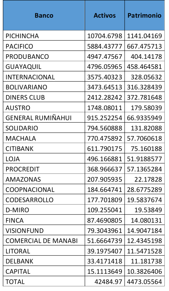 Tabla 1. Indicadores de bancos en el país enero-agosto 2019 –en millones USD-.