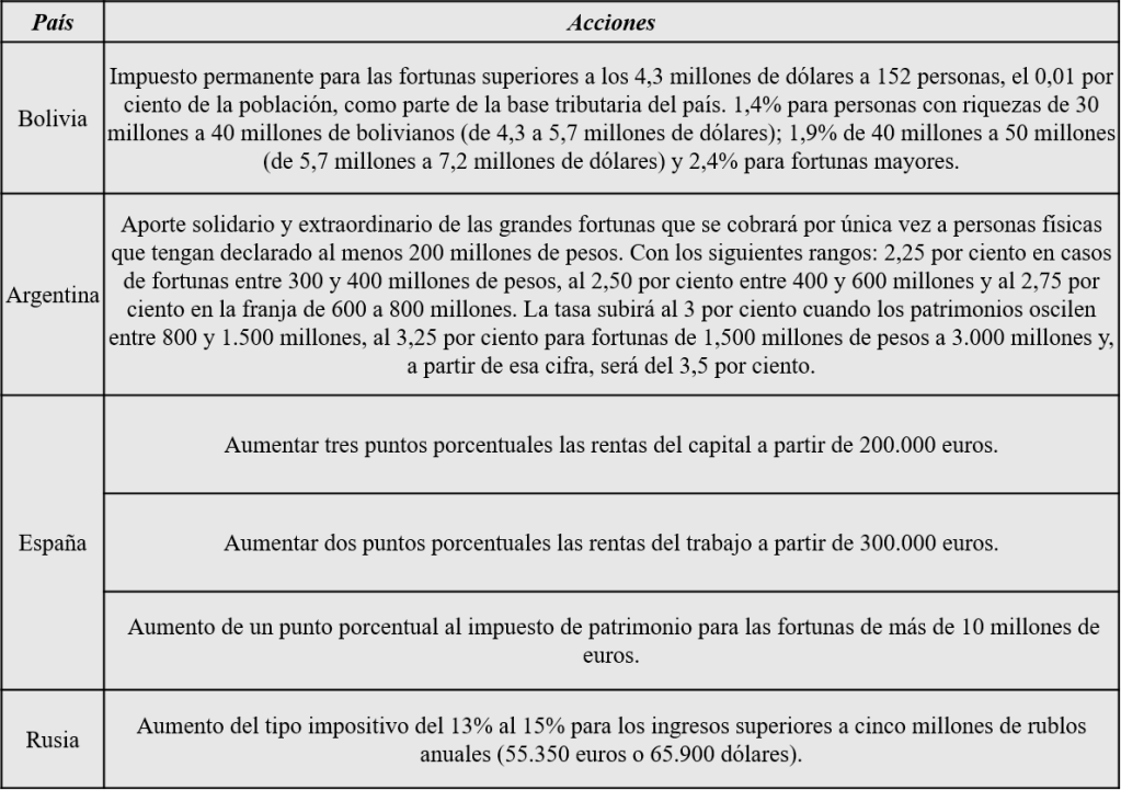 Tabla 2. Países que implementaron impuestos a las grandes fortunas durante la pandemia.