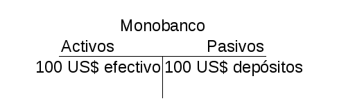 En ninguna circunstancia nuestro monobanco (que representa al sistema monetario consolidado) puede tener suficiente «respaldo» de sus depósitos para hacer frente al retiro generalizado de los depósitos. Si el total de los depósitos estuvieran respaldados por dólares del sistema monetario estadounidense, el monobanco no sería un banco, sino una simple caja de conversión que se dedicaría a la transformación «material» del dinero, ofreciendo un sustituto escritural a los billetes (o a depósitos bancarios dentro del sistema norteamericano), p.ej. para facilitar los pagos.
