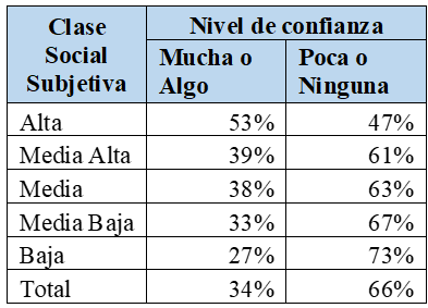 Tabla 1. Confianza en la policía por clase social en Ecuador 2020