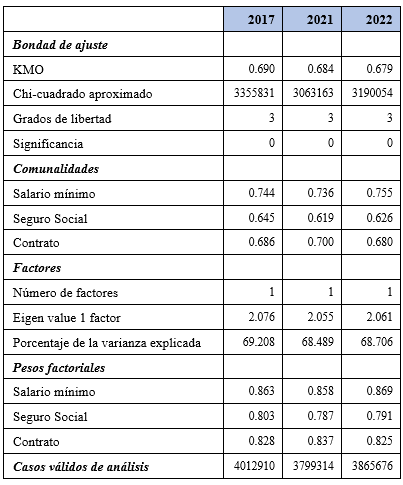 Anexo 1. Resultados del análisis factorial para Ecuador 2017-2022. Método: Análisis de Componentes Principales