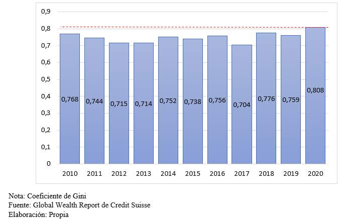 Gráfico 1. Desigualdad de riqueza en Ecuador 2010-2020