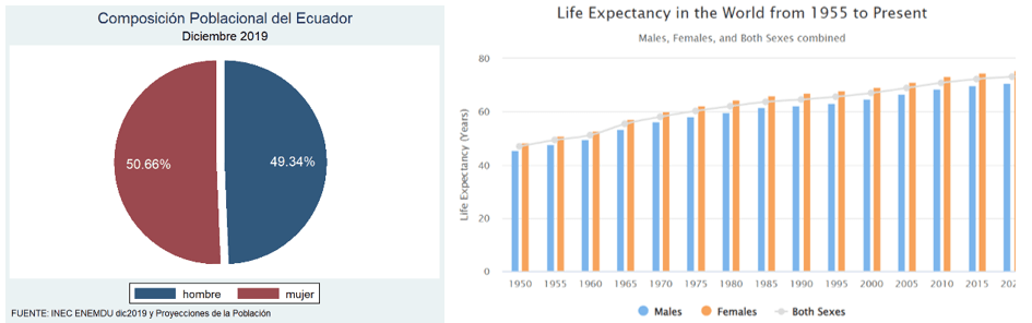 Una de las falacias más recurrentes sobre el grupo social de niñas, adolescentes y mujeres es el de catalogarnos como “grupo minoritario”, y así se suele representar, tanto en el arte como en la política o en los negocios. Cuando en realidad y concretamente en el caso de nuestro país somos el 50,66% de la población, es decir la mayoría, como lo muestran los datos del último censo de población (2010) y las proyecciones de población del INEC (2011). Es decir, el grupo social de mujeres tiene una diferencia mayor al 1% respecto de la población de hombres. Situación que se repite en la mayoría de países y regiones del mundo, exceptuando China e India (United Nations, 2023).