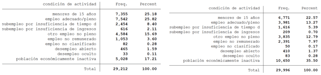 Tabla 1. Composición de la población masculina y femenina por condición de actividad