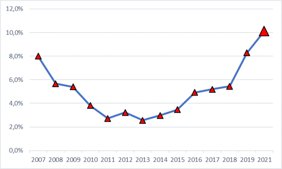 Una de las mesas de negociaciones está destinada a resolver las demandas en torno al trabajo. Las últimas cifras de junio 2022 señalan que el empleo adecuado habría aumentado en aproximadamente tres puntos porcentuales, al compararlo con junio de 2021 (pasa de 31,3% al 34%) según cifras de la Encuesta Nacional Empleo, Desempleo y Subempleo -ENEMDU-. Esto significa que aproximadamente 302 mil personas han pasado a tener un empleo adecuado. En efecto, esa cifra es utilizada por el gobierno para indicar una mejoría para la clase trabajadora, razón por la cual es inaceptable su crítica. No obstante, el dato presentado alude específicamente al número de personas que obtienen un ingreso más alto que el Salario Básico Unificado y que trabajaron más de 40 horas[1]. Desde esa perspectiva, poco o nada se dice de la estabilidad de la clase trabajadora o si esta goza de todos los derechos laborales. Por tanto, es necesario incorporar estas dimensiones al análisis de la situación de los y las trabajadores del Ecuador. De esa manera, a partir de la estimación de un índice se observa que la precariedad ha aumentado en el país y se recrudece: si en 2017 la precariedad extrema atacaba al 24% del total de la clase trabajadora asalariada, a 2021 esta alcanza al 31% y a junio de 2022 parece marcar una tendencia ascendente con un 32%. Eso implica que, en el gobierno del presidente Lasso, se ha convertido en la “norma laboral”. Inclusive, el ministro de trabajo en mayo de este año, en una reunión con empresarios en Cuenca, socializó la propuesta de reforma laboral que busca, según dijo “crear confianza para que los empresarios inviertan” si pierden el miedo a contratar.